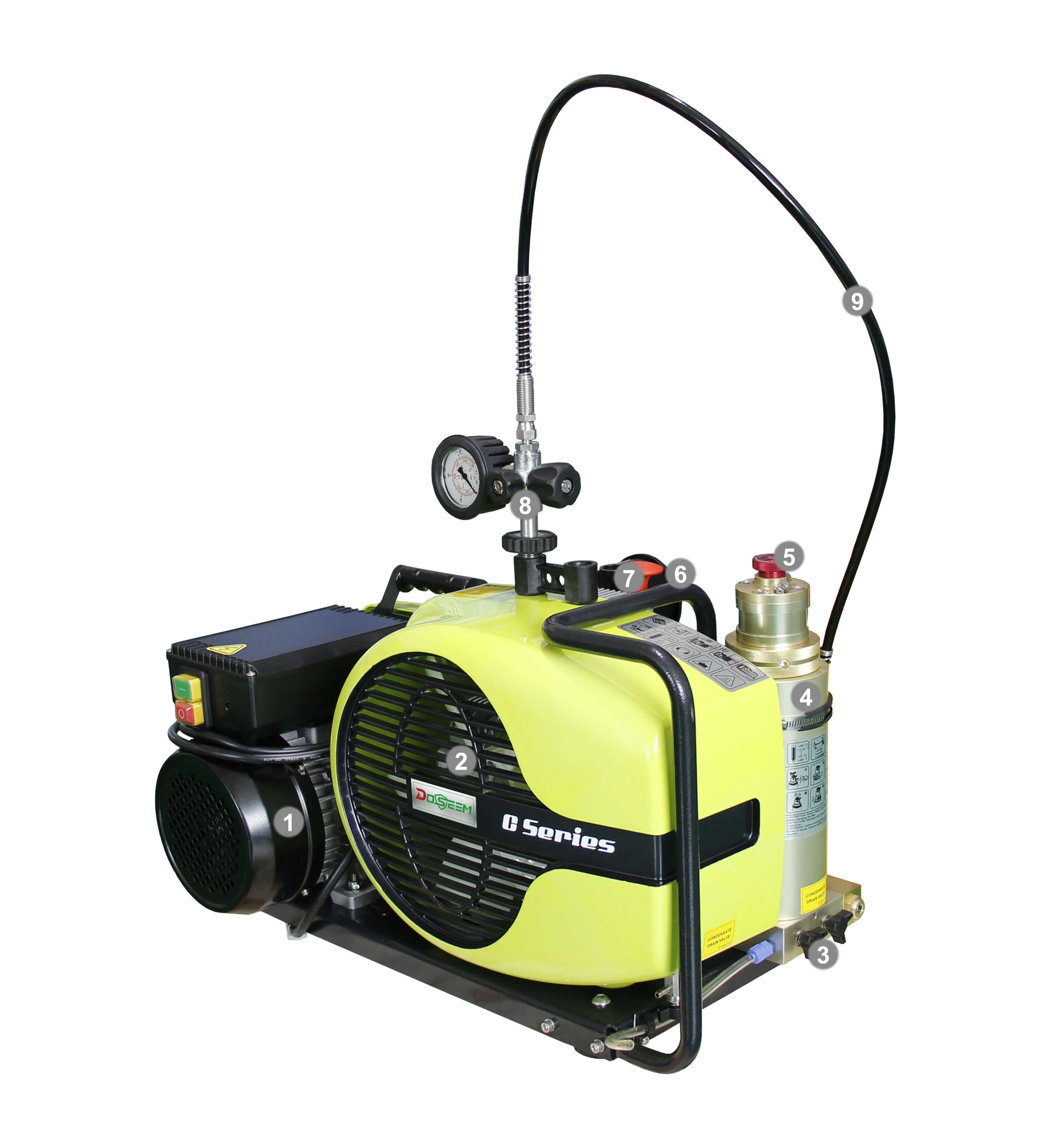 DS150-W压缩机是一款便携移动式高品质的高压气体压缩机。压缩空气符合EN12021标准。